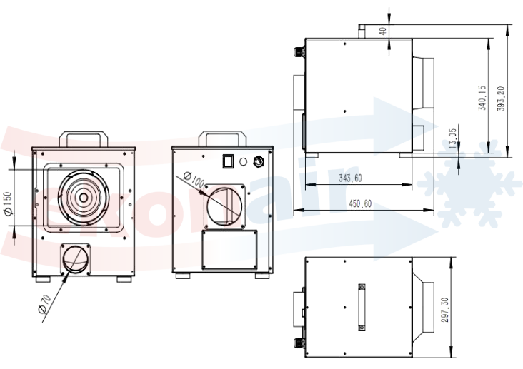 | Średnica króćca wylotu powietrza osuszonego [mm] | 100 |