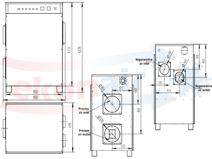 | Średnica króćca wylotu powietrza regeneracyjnego [mm] | 160 |